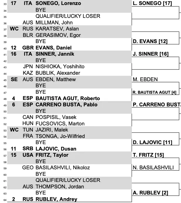 Andrey Rublev being no. 2. The Russian is currently on a 4-tournament winning streak at the ATP 500 events and he will try to extend it also in Dubai. He will play Jordan Thompson or a qualifier in the second round of the 2021 ATP Dubai Duty Free Tennis Championships as Taylor Fritz or Nikoloz Basilashvili might be his 3rd round opponents.