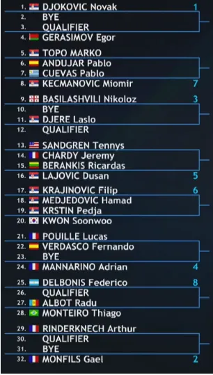 Gael Monfils. Basilashvili and Mannarino as the 3rd and 4th seed will also have 1st round BYE's. Djokovic will either face Gerasimov or a qualifier in the 2nd round with Basilashvili as the potential seeded opponent in the later stages of the event.