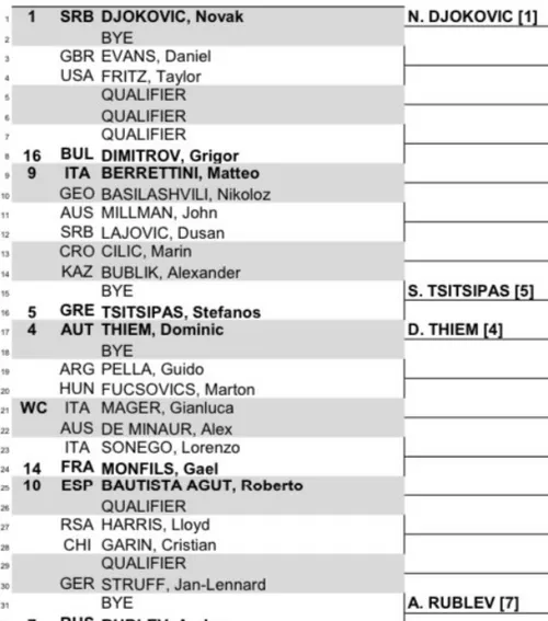 Dominic Thiem, who is always one of the biggest favorites on clay will play against Guido Pella or Marton Fucsovics and a dangerous Diego Schwartzman will take on Filip Krajinovic or Felix Auger-Aliassime. Stefanos Tsitsipas who showed a great clay-court form will meet Alexander Bublik or Marin Cilic.
