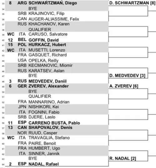 2021 Internazionali BNL d'Italia Rome ATP Draw:
