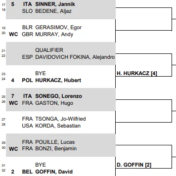 Jannik Sinner or Aljaz Bedene in the second round. Jo-Wilfried Tsonga will seek the first victory since the 2019 Davis Cup Finals against Sebastian Korda, while Lucas Pouille enters his first ATP tournament since Shanghai 2019.