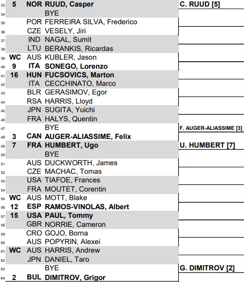 Grigor Dimitrov, Felix Auger-Aliassime, Casper Ruud and Ugo Humbert are the seeded players in the second half.