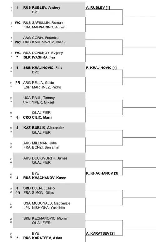 His title defence will start in the 2nd round of the event as he has a 1st round BYe and he will either face Safiullin or Mannarino. The second seed is