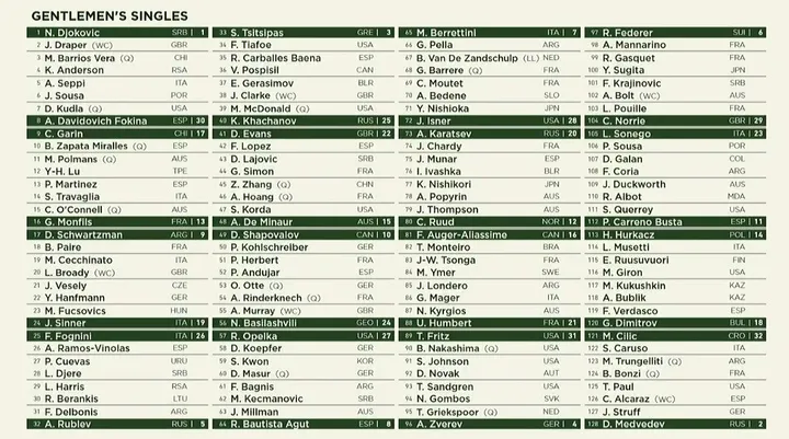 As well Projected Quarter-Finals include Djokovic facing Andrey Rublev, Tsitsipas taking on Roberto Bautista-Agut, Zverev will potentially face Queen's champion Matteo Berrettini and Medvedev is set to face Federer.