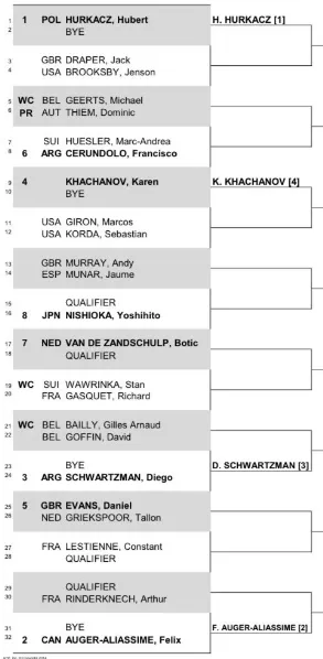 He starts off with a BYE but might face Jack Draper or Jenson Brooksby in round two. That's a very tough draw for him. The second seed will be Auger-Aliassime and he'll either face a qualifier or Rinderknech after a first-round BYE.