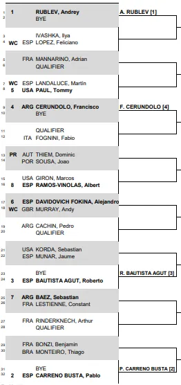 Some other interesting matchups include Tommy Paul against Spanish supertalent Martin Landaluce, Dominic Thiem vs Joao Sousa, Sebastian Korda vs Jaume Munar and Sebastian Baez taking on Constant Lestienne. Check out the full draw below.