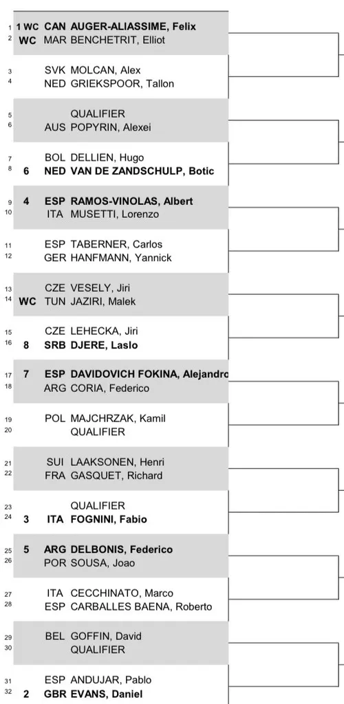 Other interesting matchups include Dellien - Van de Zandschulp, Ramos - Musetti, Davidovich Fokina - Coria and more. The event will run from April 4th till April 10th and you can check out the full draw below.