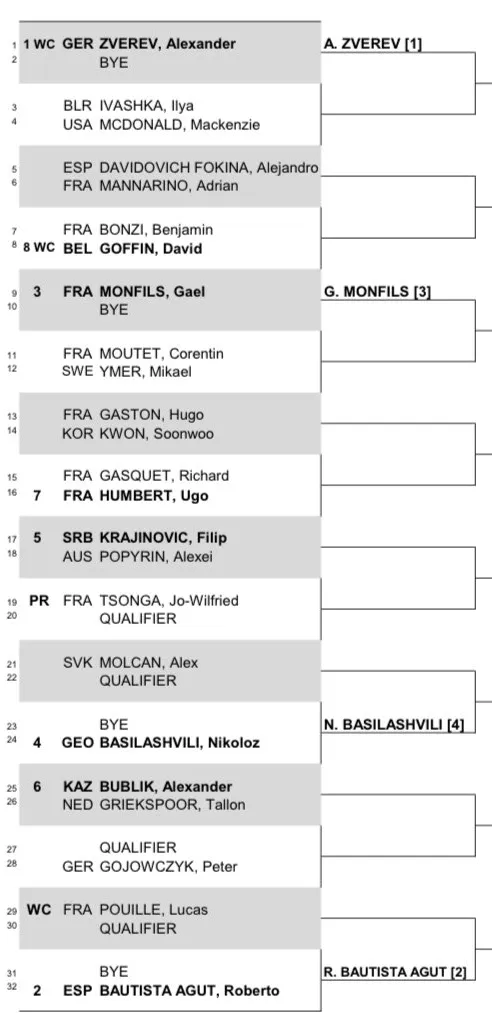 Also involved include Jo-Wilfried Tsonga, Ugo Humbert, Nikoloz Basilashvili and Alexander Bublik.