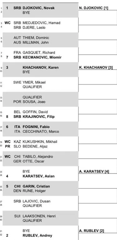 Dominic Thiem in action as he will play John Millman. Fabio Fognin iwill take on compatriot Marco Cecchinato. Another interesting first-round matchup is between Cristian Garin and Holger Rune while Rublev, Khachanov and Karatsev all have first-round BYEs. Check out the full draw below.