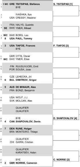 Tommy Paul won the trophy last year and he's back this year to try and defend his trophy although it will be tricky. He's staring against wild card Leo Borg whose father is someone named Bjorn Borg. Top seed Tsitsipas has a BYE but in round two he might face either Ivashka or Cressy.