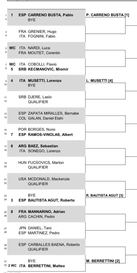 There are several interesting matches in round one with native player Lorenzo Sonego facing Sebastian Baez in round one as well as Kecmanovic playing another Italian Flavio Cobolli. Check out the rest of the matches below.