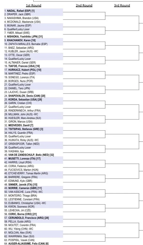 Rafael Nadal is defending champion and after a dismal start to his 2023 campaign has been handed one of the toughest assignments as he will face rising Brit, Jack Draper.