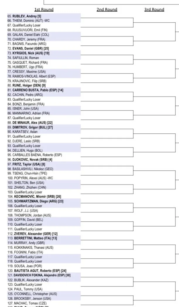2023 Australian Open ATP Draw