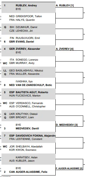 But includes a stellar line-up including Andrey Rublev, Felix Auger-Aliassime, Andy Murray, Daniil Medvedev and Alexander Zverev with a potential second round clash between Zverev and Murray.