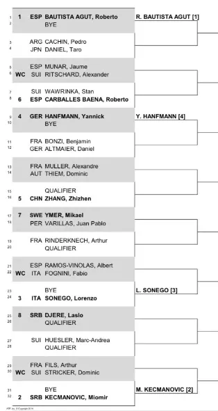 2023 Swiss Open Gstaad Draw including Bautista Agut, Kecmanovic, Sonego, Fils, Wawrinka and Hanfmann