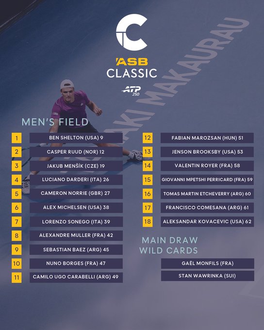 Taking place in the same week as Adelaide, the tournament will end the day before the main draw starts in Australia albeit for top stars like Ruud, Mensik and Shelton who top the draw it isn't likely to affect too much if they go far in Auckland albeit it might be a minor inconvenience to play multiple games in a row.