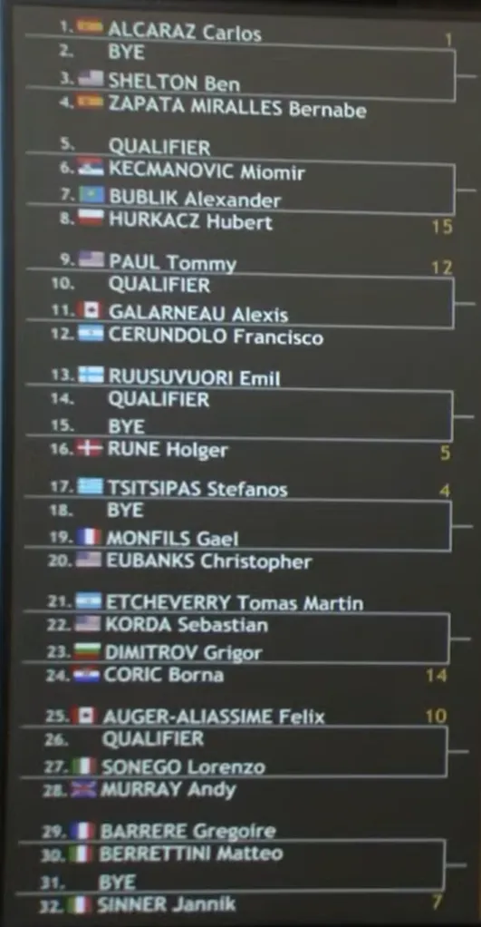 Other top ties include Gael Monfils facing Wimbledon star, Christopher Eubanks. Andy Murray faces Lorenzo Sonego with the winner likely to face Felix Auger-Aliassime.