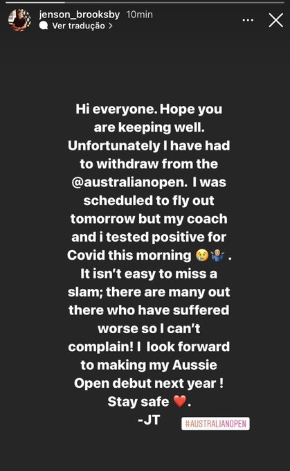 "It isn't easy to miss a Slam, there are many out there who have suffered worse so I can't complain. I look forward to making my Aussie Open debut next year, stay safe," he said on an Instagram story earlier this morning.