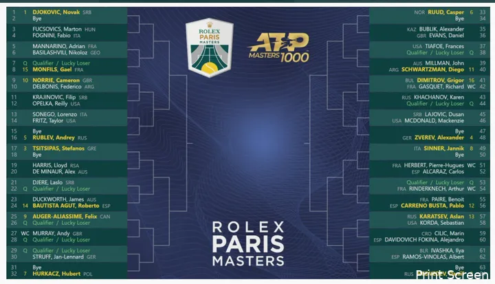 Draw ATP Rolex Paris Masters 2021: Djokovic to face Fognini or Fucsovics in second round