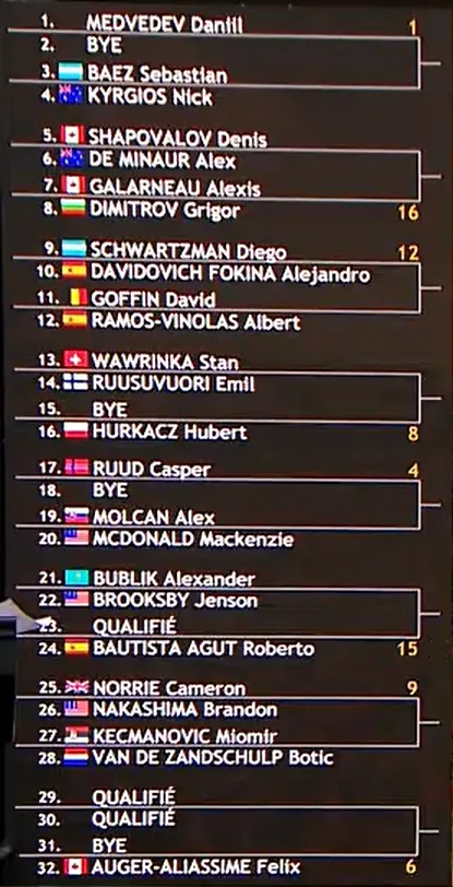 Daniil Medvedev is top seed and receives a bye facing either Sebastian Baez or a block buster tie with