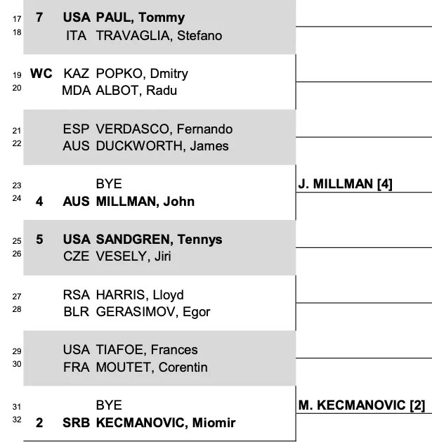 Frances Tiafoe. The draw features also Fernando Verdasco who will play against James Duckworth in the first round as the winner will take on