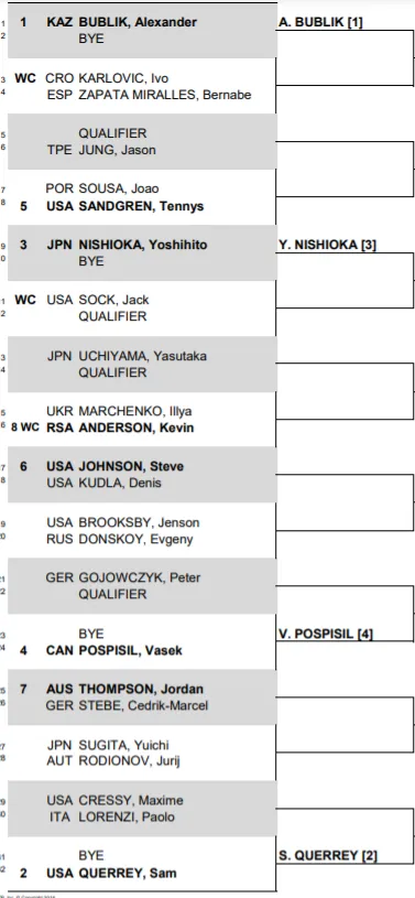 Besides these two we will see Nishioka and Pospisil who are the 3rd and 4th seeds. Check out the full draw below.