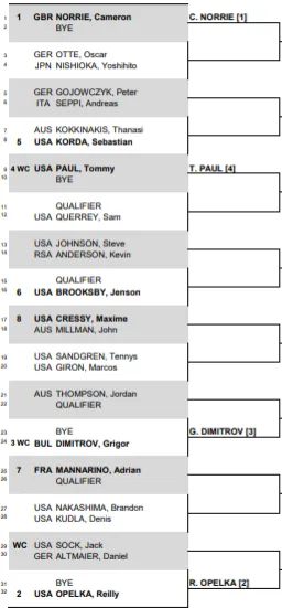 Other interesting matchups include Steve Johnson - Kevin Anderson, Maxime Cressy - John Millman, Tennys Sandgren and Marcos Giron and more. Check out the full draw below.