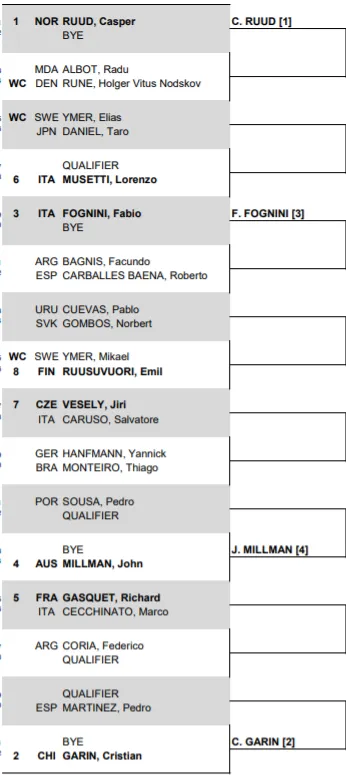 The Finnish player is a strong player anywhere but clay and Fognini will fancy his chances. Check out the full draw below and don't forget to follow us for daily news and reports from the event.