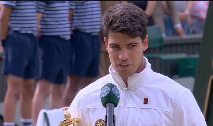 Wimbledon. I’m repeating my dream. I want to keep going. Obviously it’s a great feeling to play on this beautiful court. To lift this amazing trophy. For me this is the most beautiful tournament, most beautiful court.. and the most beautiful trophy," said Alcaraz.