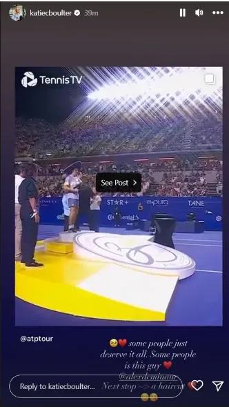 de Minaur and Boulter have been dating for a while now and their relationship is a rather private one but most tennis fans are fully aware of it. They support each other when their commitments allow it and Boulter was glued to the screen watching de Minaur play in Acapulco. He did well beating Tommy Paul in the final to win the biggest trophy of his career.