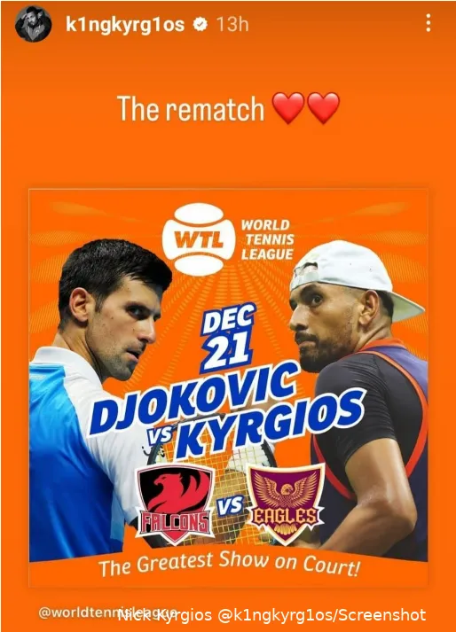 They will both be in Dubai for the World Tennis League and according to Kyrgios himself, there will be a match between the two there. It's going to take place on December 21st with Kyrgio sharing the news on social media with the caption: