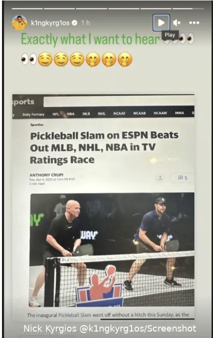 Kyrgios has a vested interest in the sport, being the co-owner of sports team Miami Pickleball Club, alongside four-time Grand Slam champion