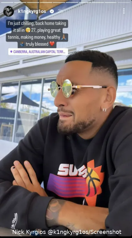 Nick Kyrgios reflected on his year with a story caption on Instagram explaining that he is feeling really blessed.