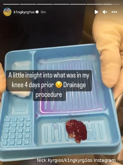 Kyrgios also took to social media to show what was drained from his knee before the decision to withdraw.