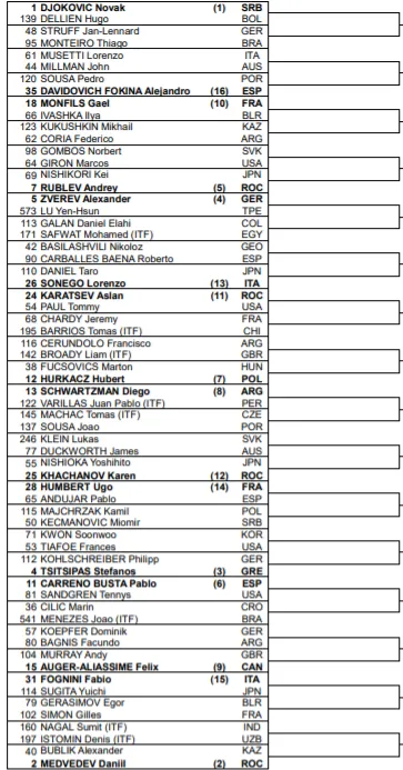 Men's Tennis Draw - 2020 Tokyo Olympic Games (in full)