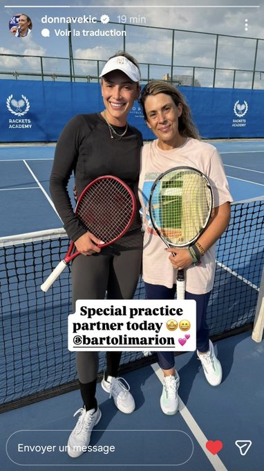 While Djokovic trained with a Greek prodigy, Donna Vekic had a special practice partner today in the form of the former Wimbledon champion Marion Bartoli.