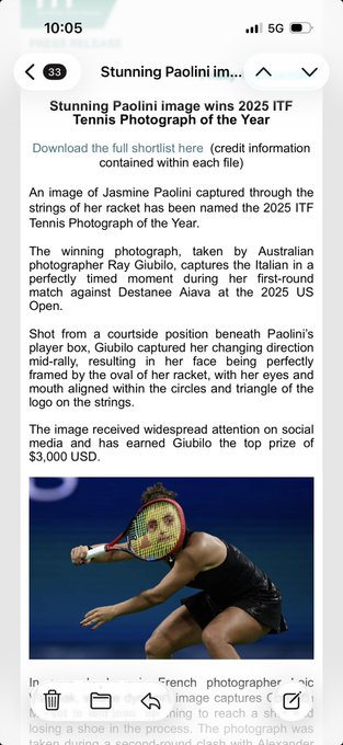 Jasmine Paolini gained viral status with a brilliant photo taken by photographer Ray Giublio which has won ITF Photograph of the Year.