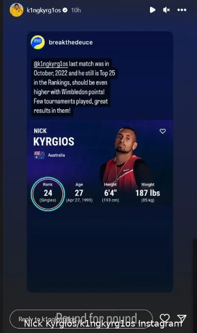 Nick Kyrgios is out of action and he won't be back for a while as he withdrew from Madrid recently but he's still ranked inside the top 25 of the world.