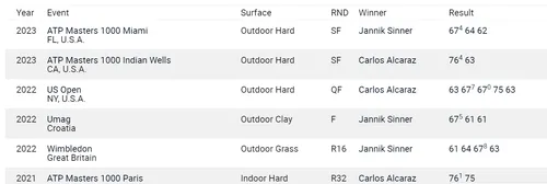 Jannik Sinner then continued the back-and-forth winning in Umag and Wimbledon in 2022 with Alcaraz taking their first competitive meeting back in 2021. As a result, it is very much anybody's game, especially with both not exactly in turbo form as of late.