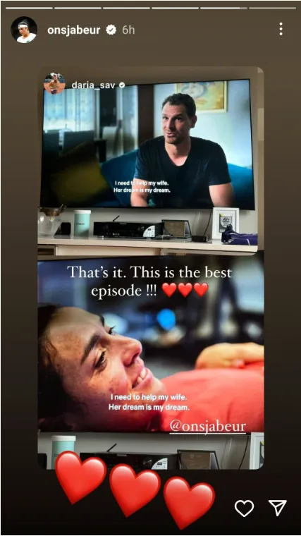 Ons Jabeur's husband for sticking by his wife and helping her achieve her dreams against all odds calling it the best episode in the series.