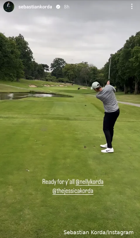"Ready for y'all @nellykorda @thejessicakorda," Sebastian wrote on Instagram, accompanied by a video of him teeing off on a golf course.