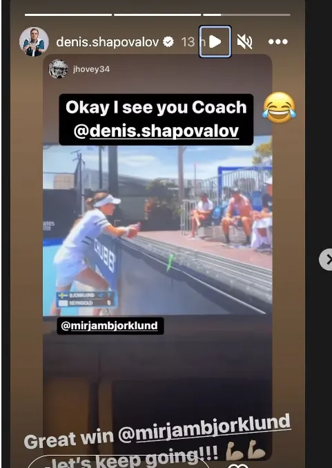 Denis Shapovalov put on his coaching cape to help girlfriend Mirjam Bjorklund secure a big win as she looks to qualify for the