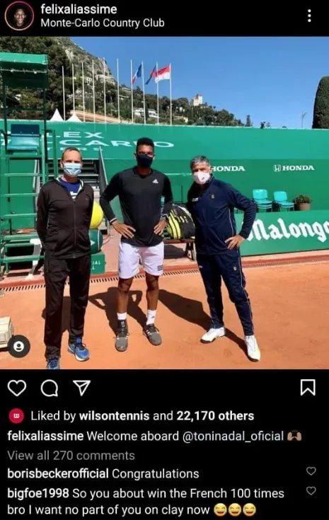 Frances Tiafoe joked with his friend in the comments, saying Felix will win 100 Roland Garros titles under Toni's guidance.