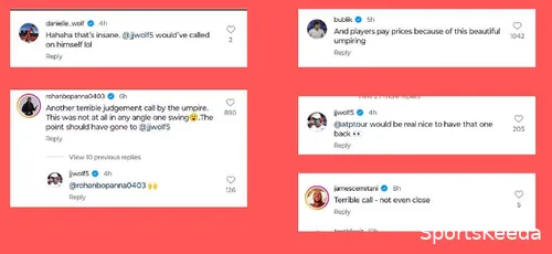 “Another terrible judgement call by the umpire. This was not at all in any angle one swing. The point should have gone to @jjwolf5” he wrote.