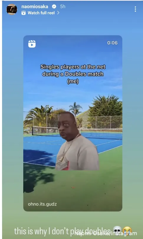 "This is why I don't play doubles," Osaka posted on her Instagram story.