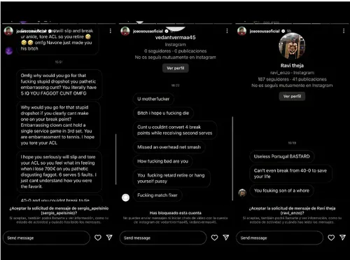Threats included hoping he snaps his ACL after losing 700 euros and accusing him of being a match fixer among the more horrifying content.