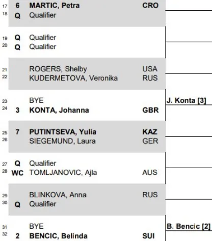Johanna Konta and Shelby Rogers will seek the semi-final spot from the third quarter, while Yulia Putintseva and