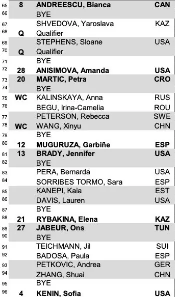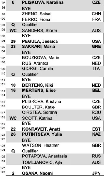 Karolina Pliskova lead the field in the bottom quarter, with Maria Sakkari and Elise Mertens as their main rivals.