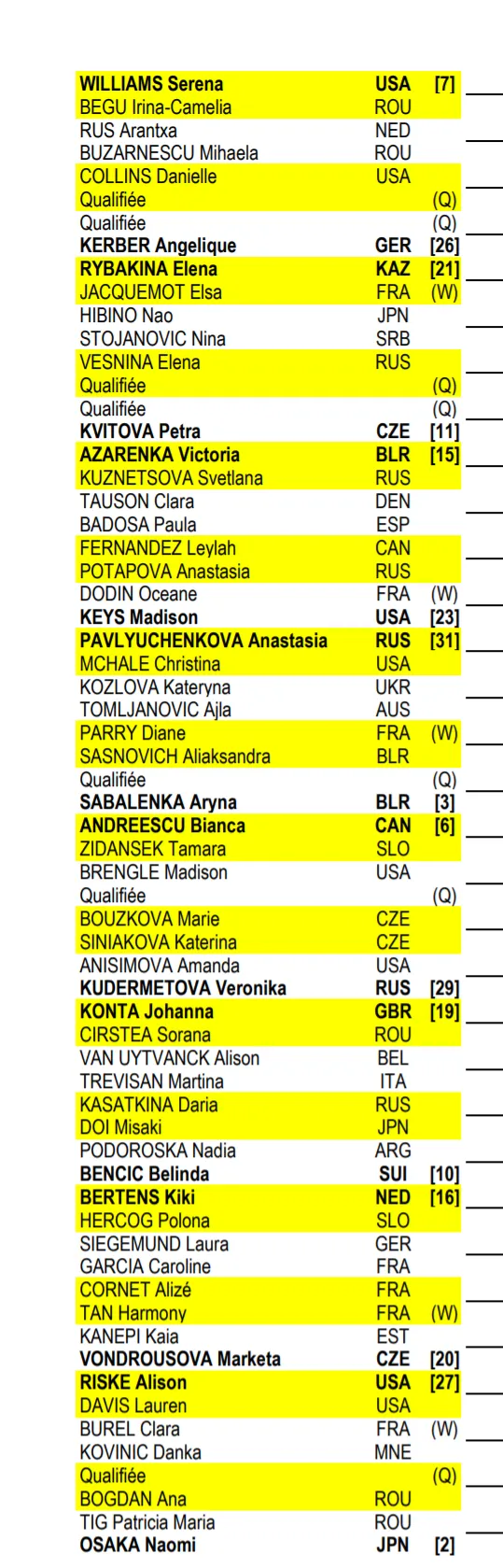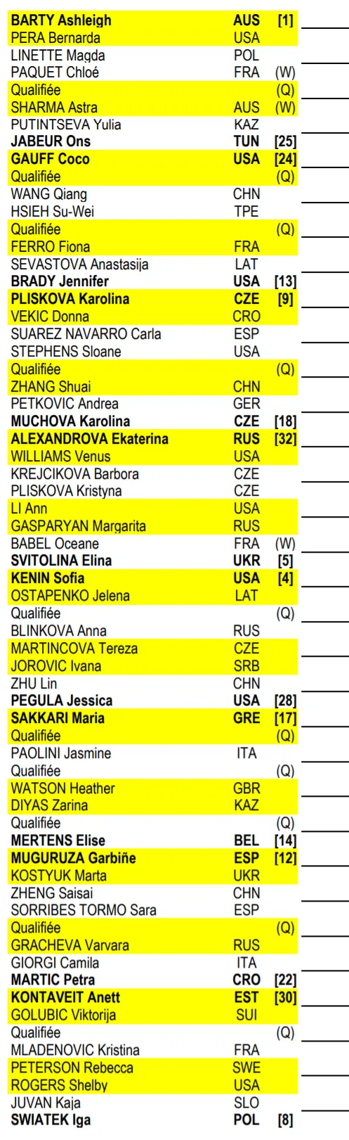 2021 Roland Garros WTA Draw: