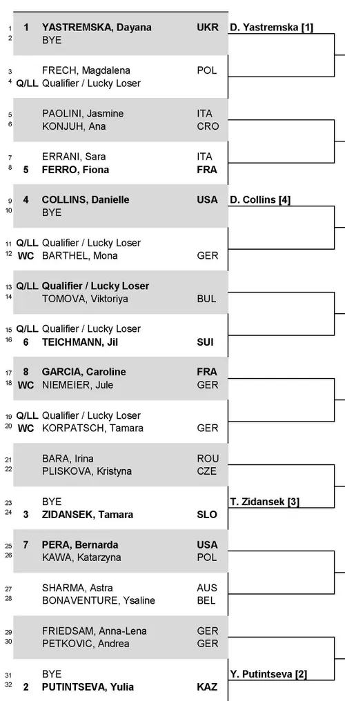 Danielle Collins who faces either Mona Barthel or a qualifier/lucky loser.